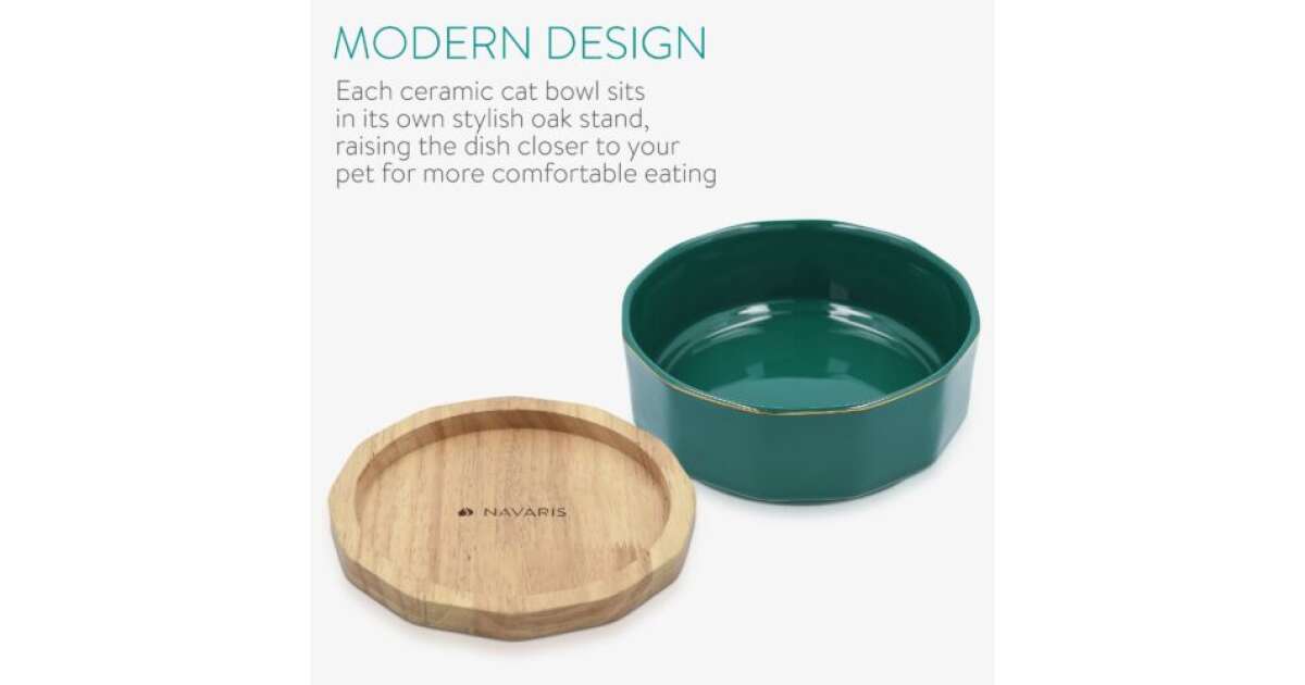 Navaris Kerámia Kutya-Macska Tál Készlet - 2 db, 800 ml, Fa Állvánnyal 🐾