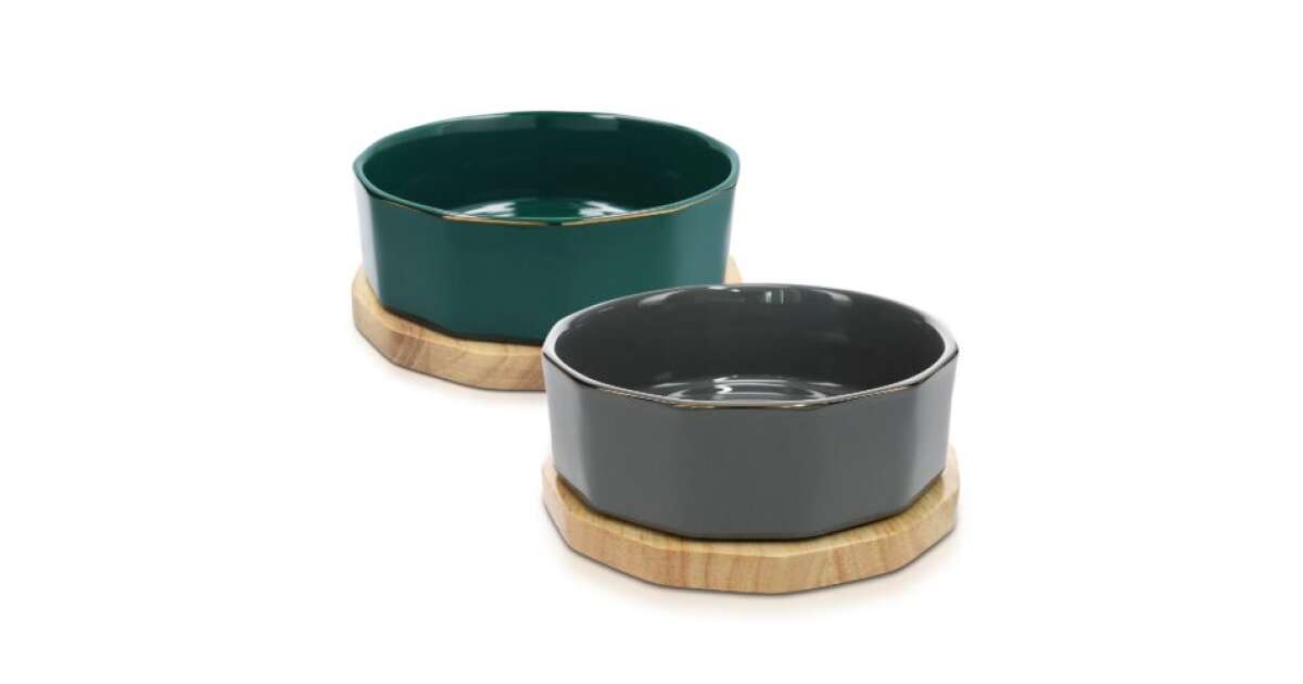 Elegáns és praktikus kerámia tálkészlet kedvenceidnek, csúszásmentes tölgyfa állvánnyal! Két darab 800 ml-es tál biztosítja a kényelmes étkezést és ivás lehetőségét.