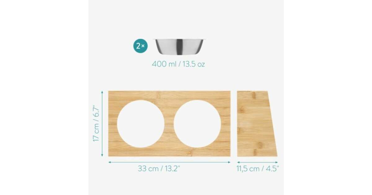 Ezt a terméket így is ismerheted: 2 db-os tálca macskáknak és kutyáknak bambusz támasztékkal Navaris, 400 ml, barna, 54489.01