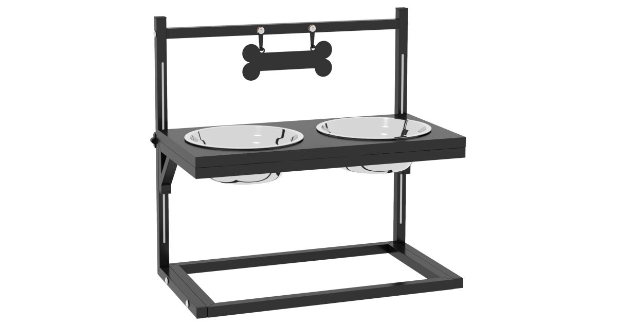 Ezt a terméket így is ismerheted: PawHut Állítható Magasságú Kutyatányér Állvány, 2 db 900 ml-es Acél Tál, Fekete