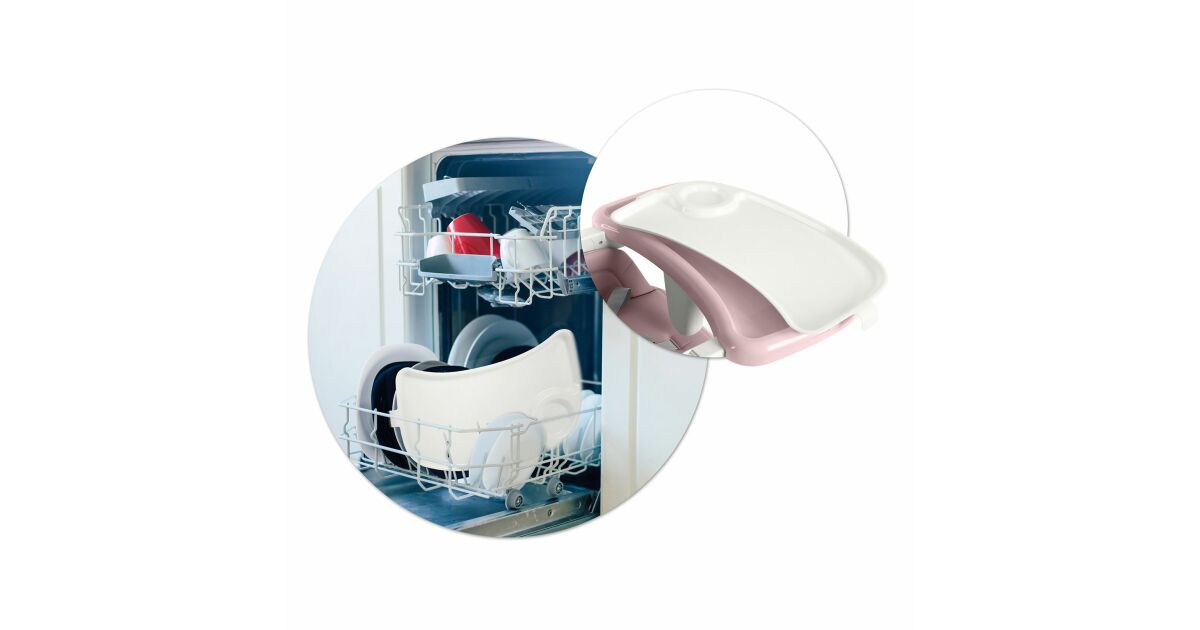 - Levehető és állítható tálca: A tálca könnyen tisztítható és a baba méretéhez igazítható.