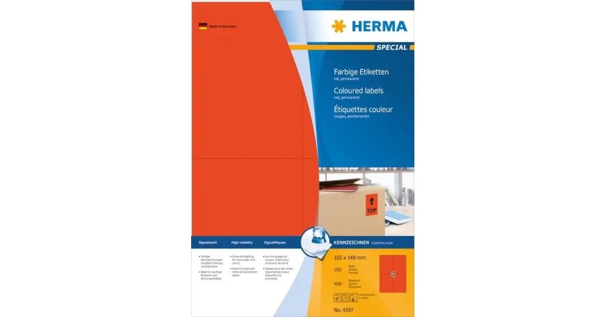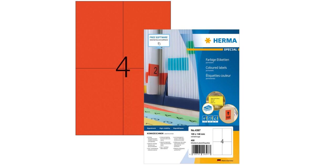 Herma A4 színes címkék, matt papír piros, 400 db (4397) vásárlás: