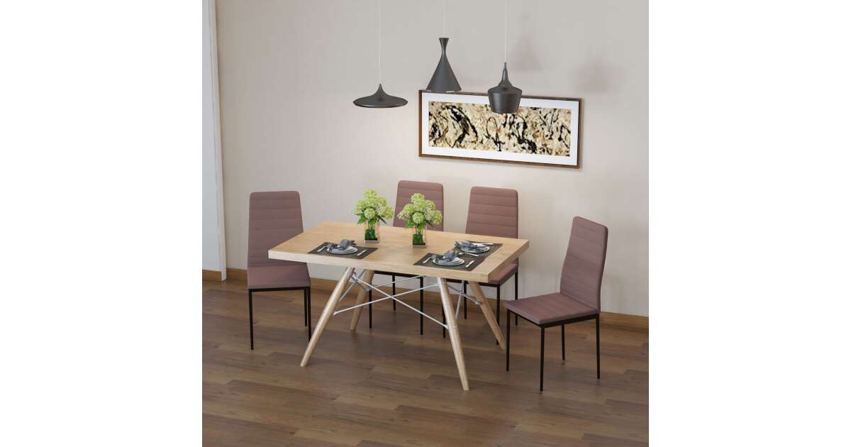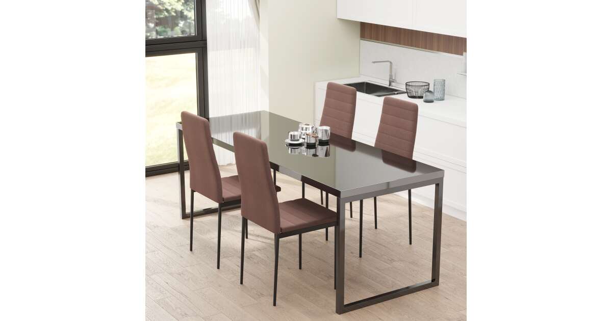 Ez a 4 darabos khaki színű szék szett tökéletes választás, ha modern és kényelmes ülőalkalmatosságot keresel étkeződbe vagy más helyiségekbe. A vászon hatású poliészter kárpit és a masszív fém lábak kombinációja elegáns megjelenést kölcsönöz, miközben biztosítja a tartósságot.