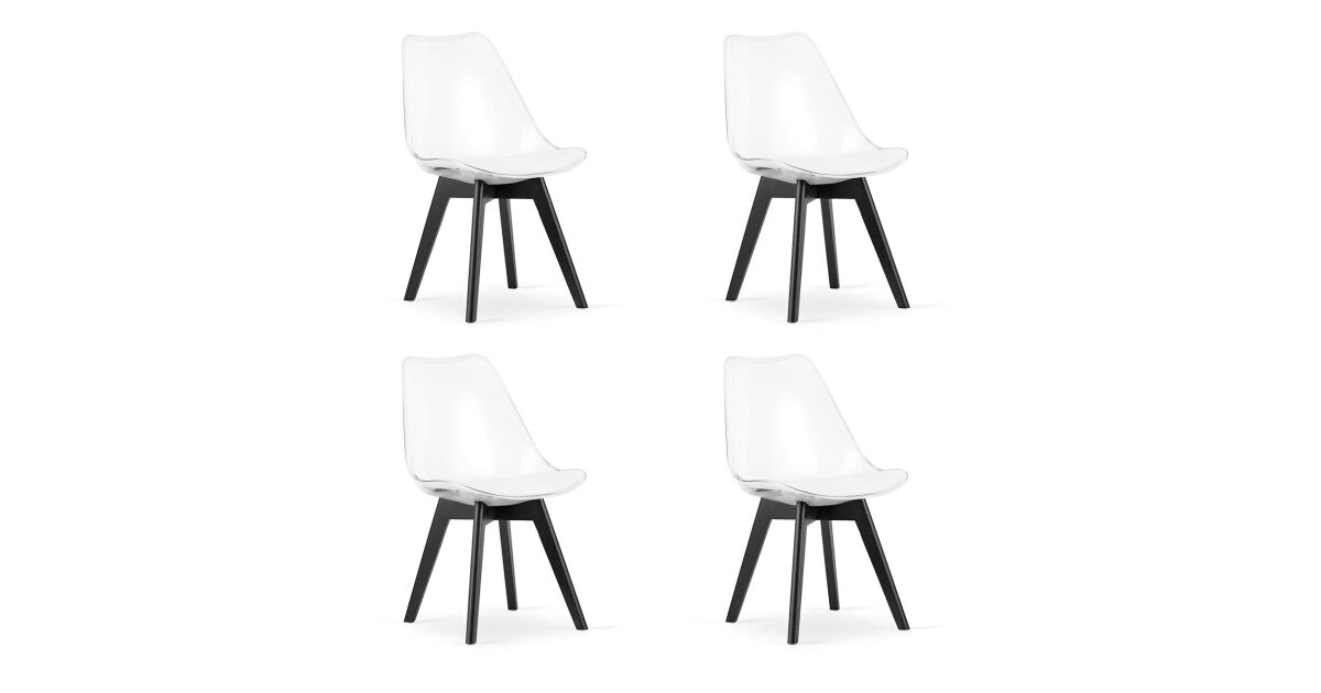 4 db konyhai/nappali szék, Mercaton, Mark, PP, fa, átlátszó és fekete, 49x43x82 cm, 49x43x82 cm