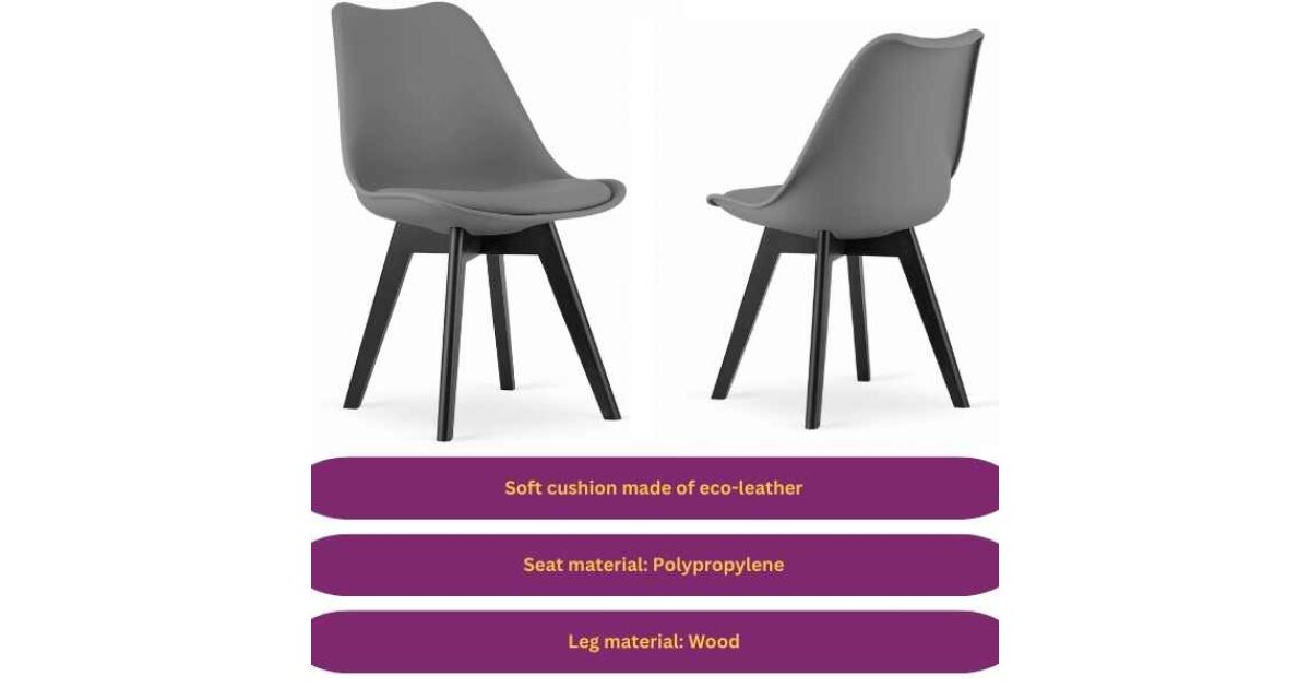 4 darabos készlet, Mercaton MRK szék, skandináv stílusú, bükkfa lábakkal, PP üléssel és ökológiai bőrpárnával, 49 x 43 x 82 cm, grafit vélemények