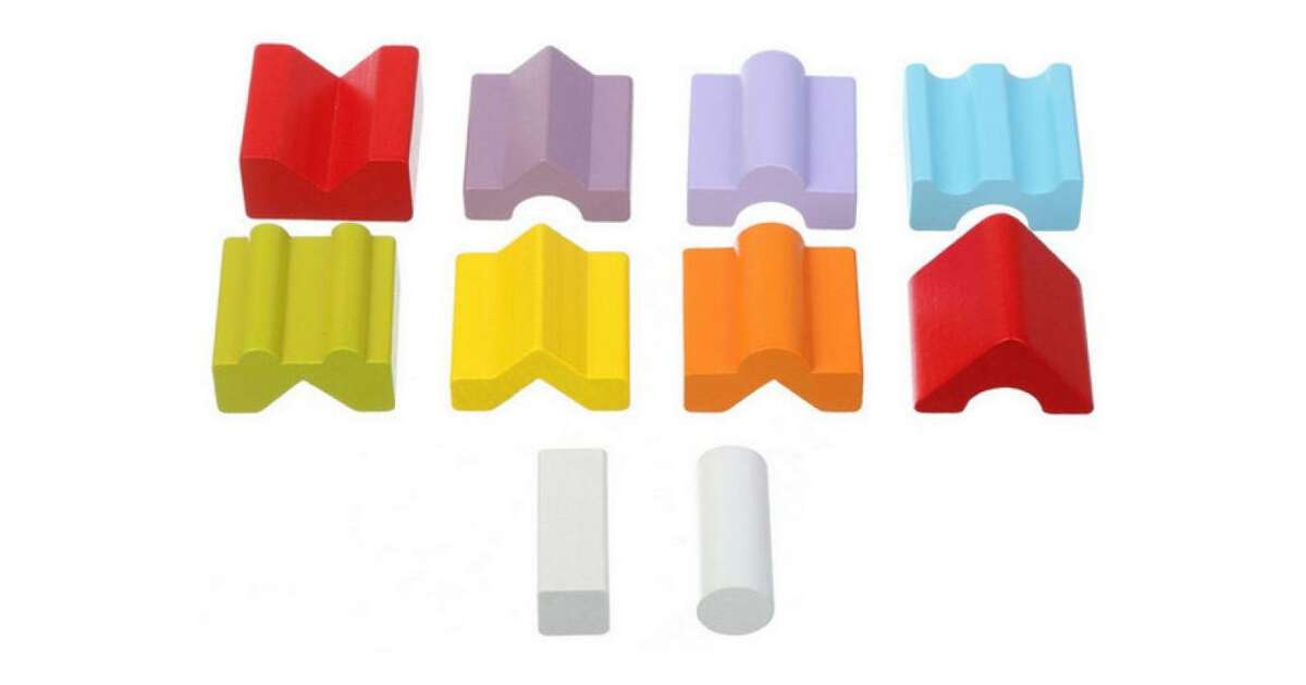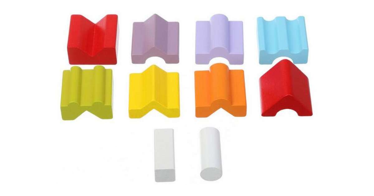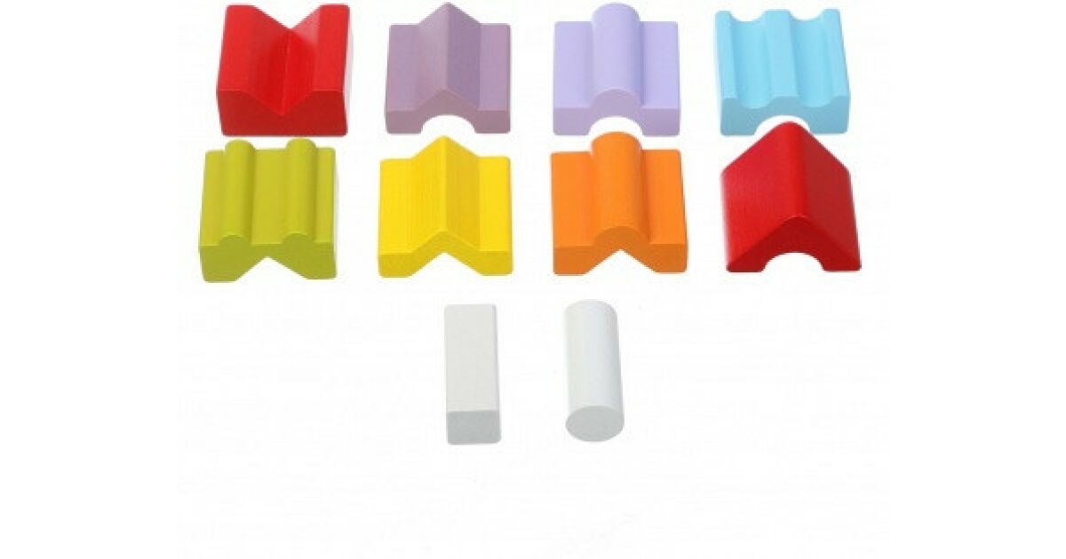 - 10 db színes, egyedi formájú fa építőelem 🧱