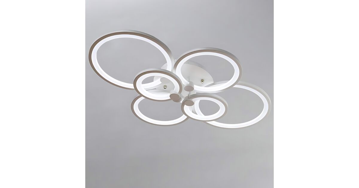 Tervezés és kivitelezés A csillár hat harmonikusan elrendezett gyűrűből áll, lenyűgöző vizuális hatást és légies kialakítást kínálva, tökéletes a modern és minimalista belső terekbe.