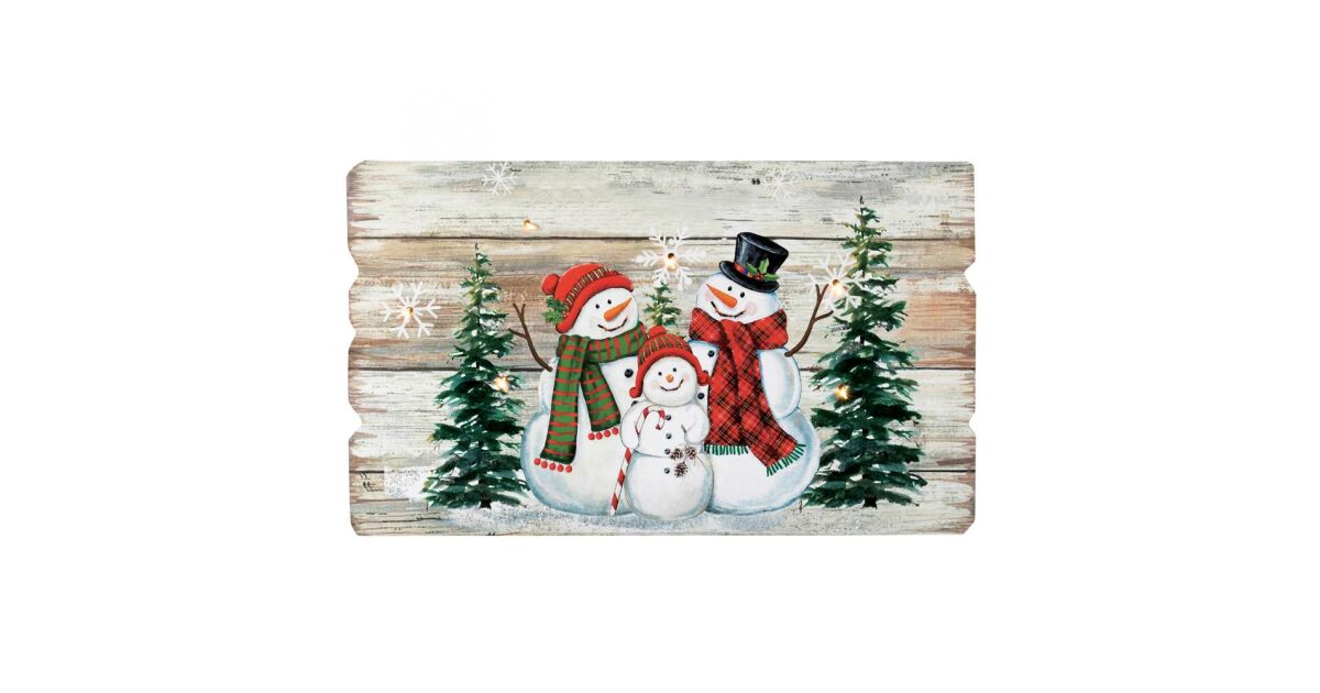 Varázsoljon meghitt karácsonyi hangulatot otthonába ezzel a gyönyörű, 40 cm széles fa világító képpel! A képen egy bájos hóember család látható, amelyet melegfehér LED-ek világítanak meg. A lézerrel kivágott motívumok és a finom részletek igazán különleges hangulatot teremtenek.