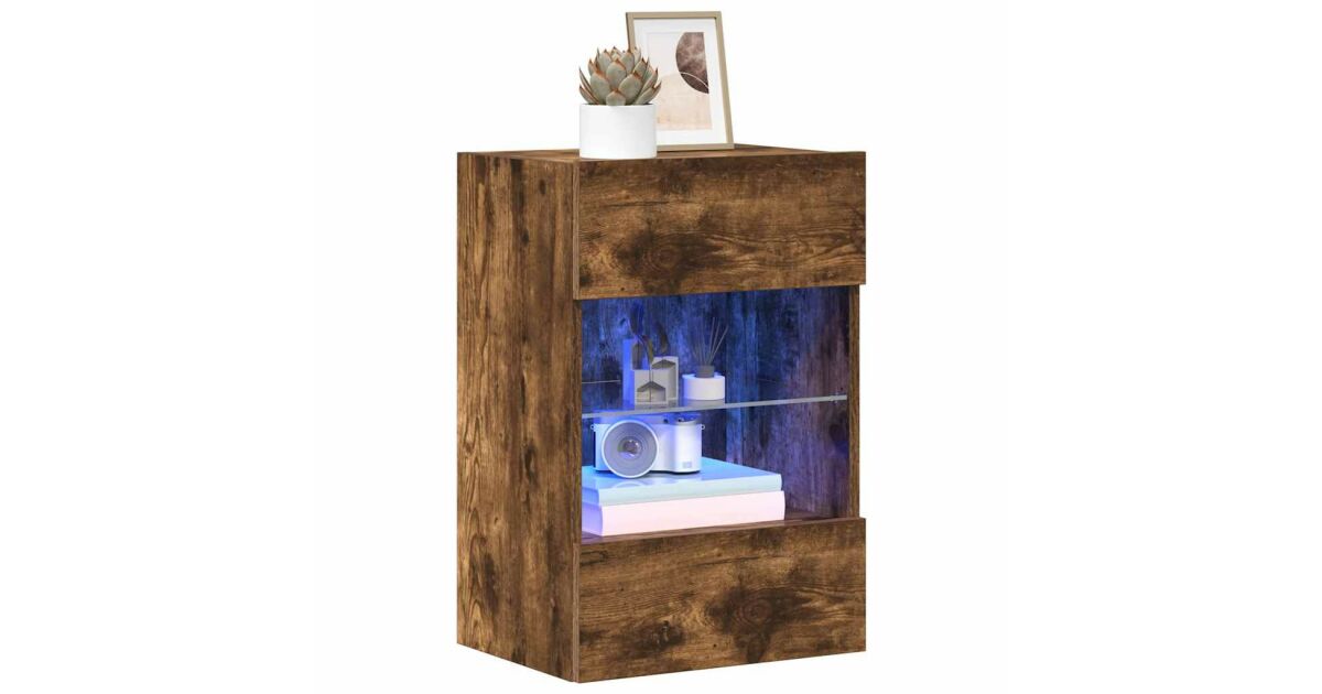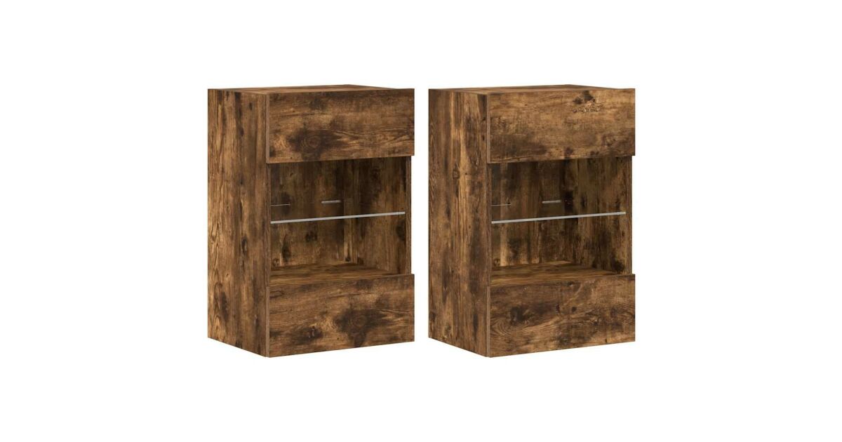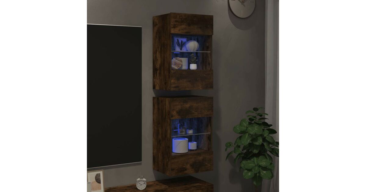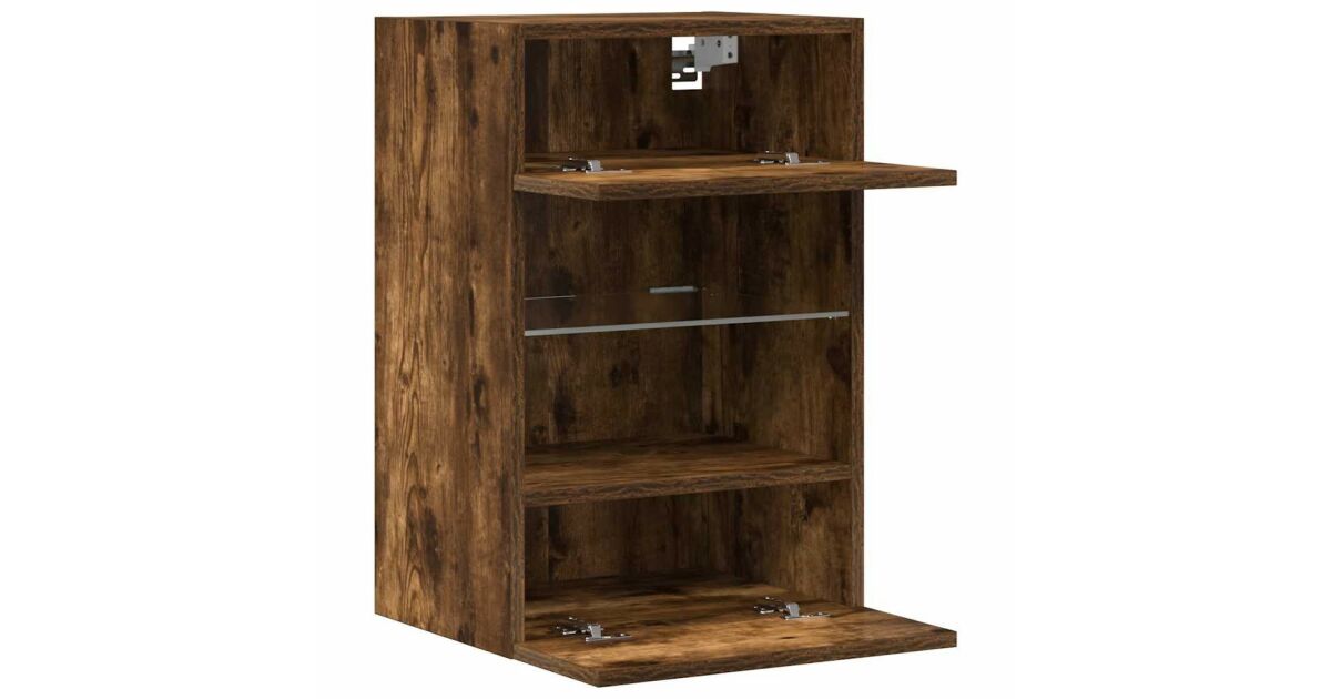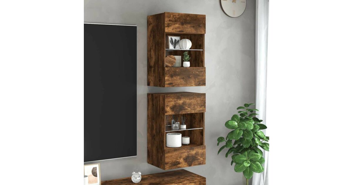 2 db füstös tölgy fali szekrények LED világítással TV-hez 40x30x60,5 cm leírása