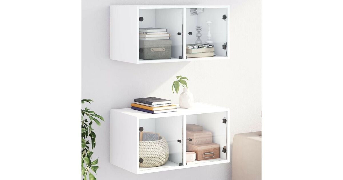 Ezt a terméket így is ismerheted: vidaXL 2 db fehér faliszekrény üvegajtóval 68,5 x 37 x 35 cm