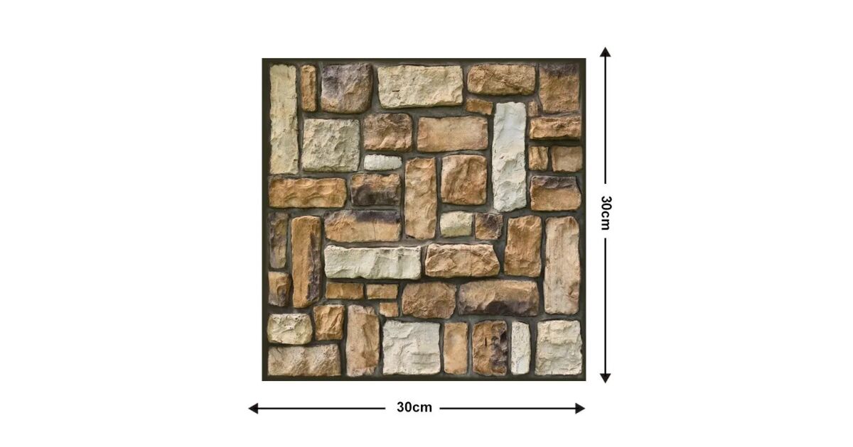 10 db 3D tapétalap készlet, KeepHome, 30 x 30 cm, PVC, kő típus, fedett felület 0,9 nm, öntapadó, barna