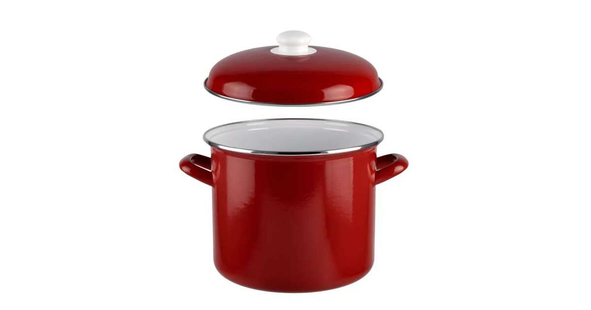 Ez a 24 cm átmérőjű, 8,6 literes, piros zománcozott fazék a Perfect Home-tól minden konyha nélkülözhetetlen kelléke. Strapabíró zománcbevonata könnyen tisztítható és karcálló. Ideális nagy adagok főzéséhez, levesek, pörköltek, vagy akár befőttek készítéséhez.