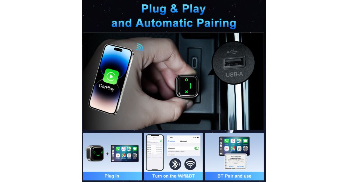 Modell: 2 az 1-ben vezeték nélküli CarPlay + Android Auto adapter