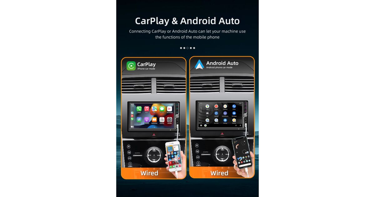 - 📱 Android Auto és CarPlay: Könnyedén csatlakoztasd okostelefonodat (vezetékesen) és használd a kedvenc alkalmazásaidat, navigációt, zenét és telefonhívásokat közvetlenül a lejátszó képernyőjén.