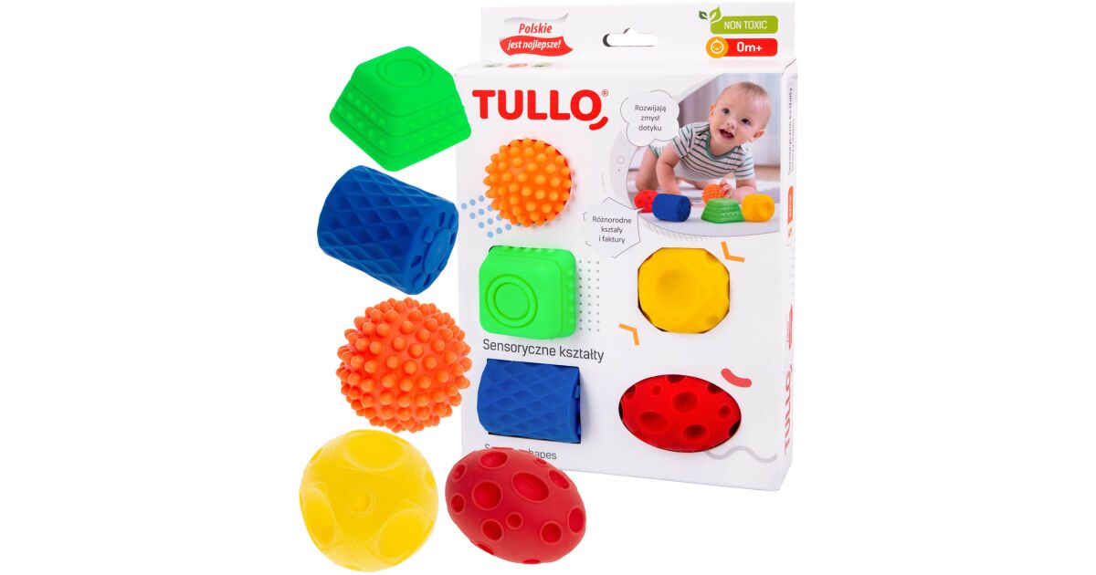 Ez az 5 darabos Tullo érzékszervi labda és forma készlet tökéletes a babák érzékszervi fejlődésének támogatására. A különböző textúrák és formák serkentik a tapintást, a látást és a finommotoros készségeket.