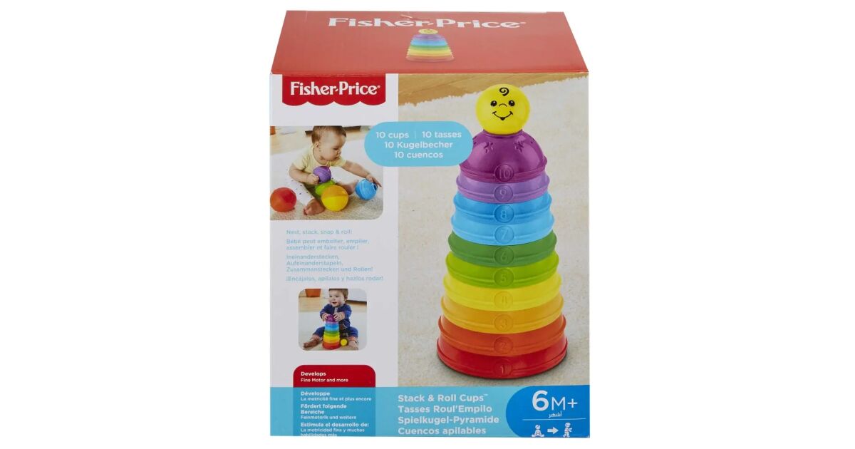 Ez a vidám, 10 darabos Fisher-Price csészepiramis tökéletes játék a babák számára a finommotoros készségek fejlesztésére. A színes csészék egymásra rakhatók, így egy szórakoztató torony építhető belőlük, vagy akár golyóként is guríthatók. A tetejére egy mosolygós arcot is fel lehet helyezni, ami még vonzóbbá teszi a játékot.