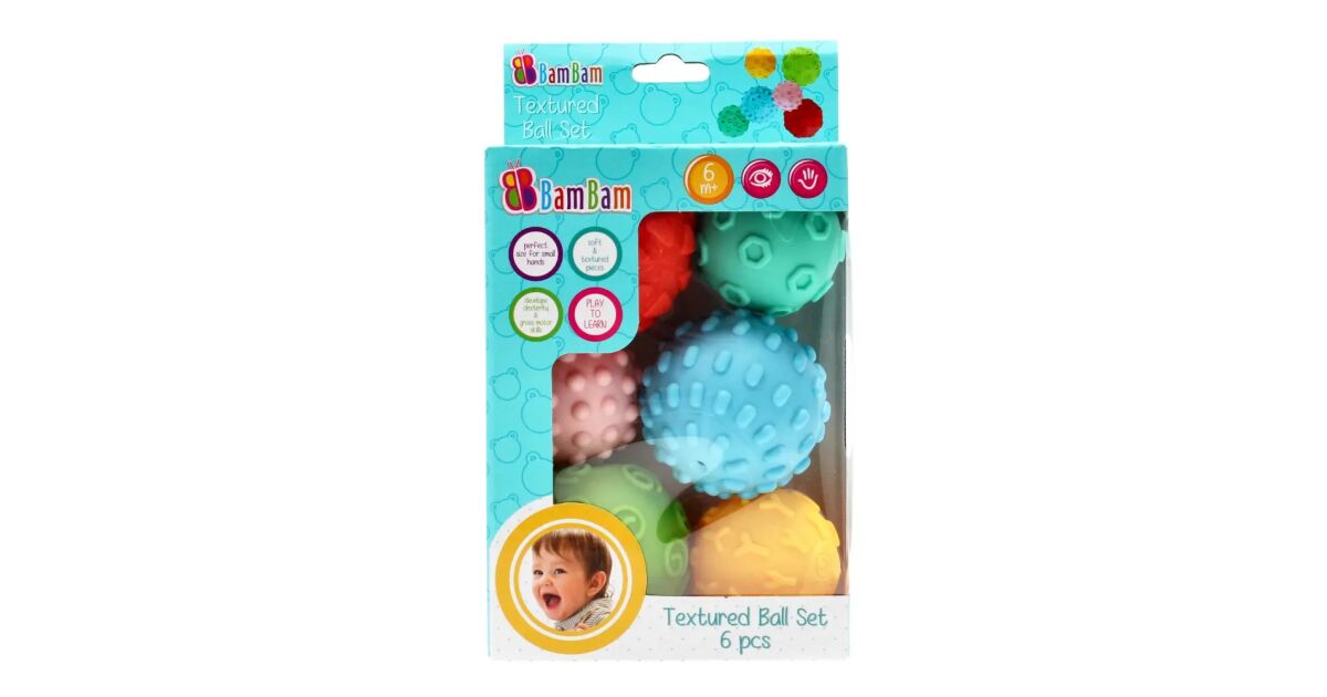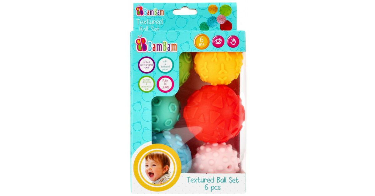 Ez a 6 darabos BamBam érzékszervi fejlesztő labda szett tökéletes választás a 6 hónapos kortól kezdve a babák számára. A különböző színű és texturált labdák vidám játékot biztosítanak, miközben fejlesztik a baba idegrendszerét, finommotorikus képességeit és szem-kéz koordinációját. A rücskös felületű labdák a fogzás kellemetlen érzését is enyhíthetik. 🥰