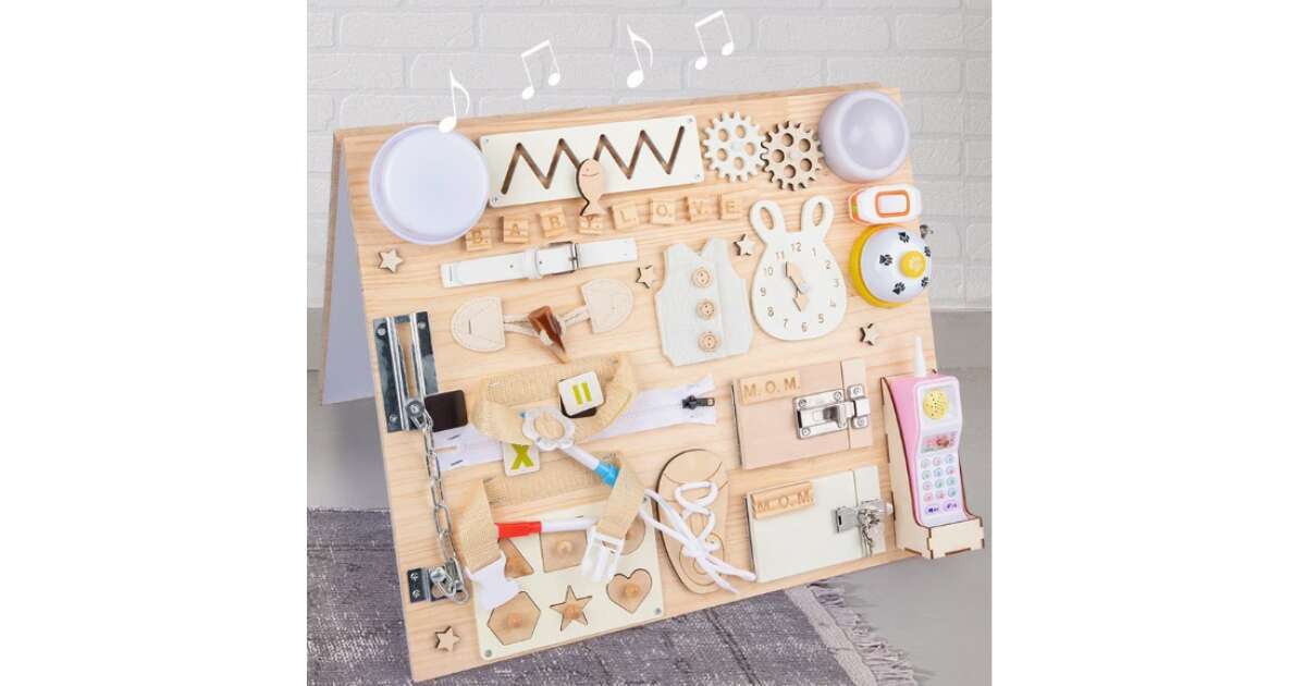 - Egyszerű, de lebilincselő: a gyerekek órákig el tudnak szórakozni a matatófallal, miközben fejlesztik magukat.