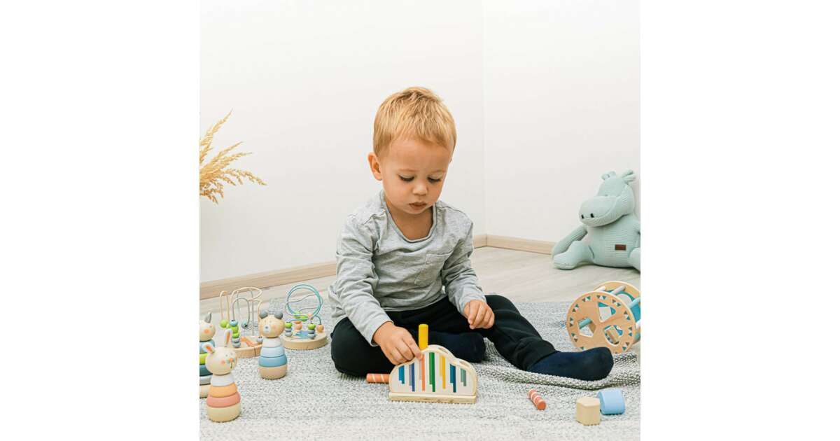Ez a színes, vidám fa játék fejleszti a kicsik finommotorikus készségeit, koordinációját és koncentrációképességét. A rugós mechanizmusnak köszönhetően a színes hengerek szórakoztatóan ugrálnak ki a helyükről, miközben a baba fejleszti a kézügyességét és a problémamegoldó képességét. A termék természetes bükkfából és vízbázisú festékekből készült, így biztonságos a gyermekek számára.