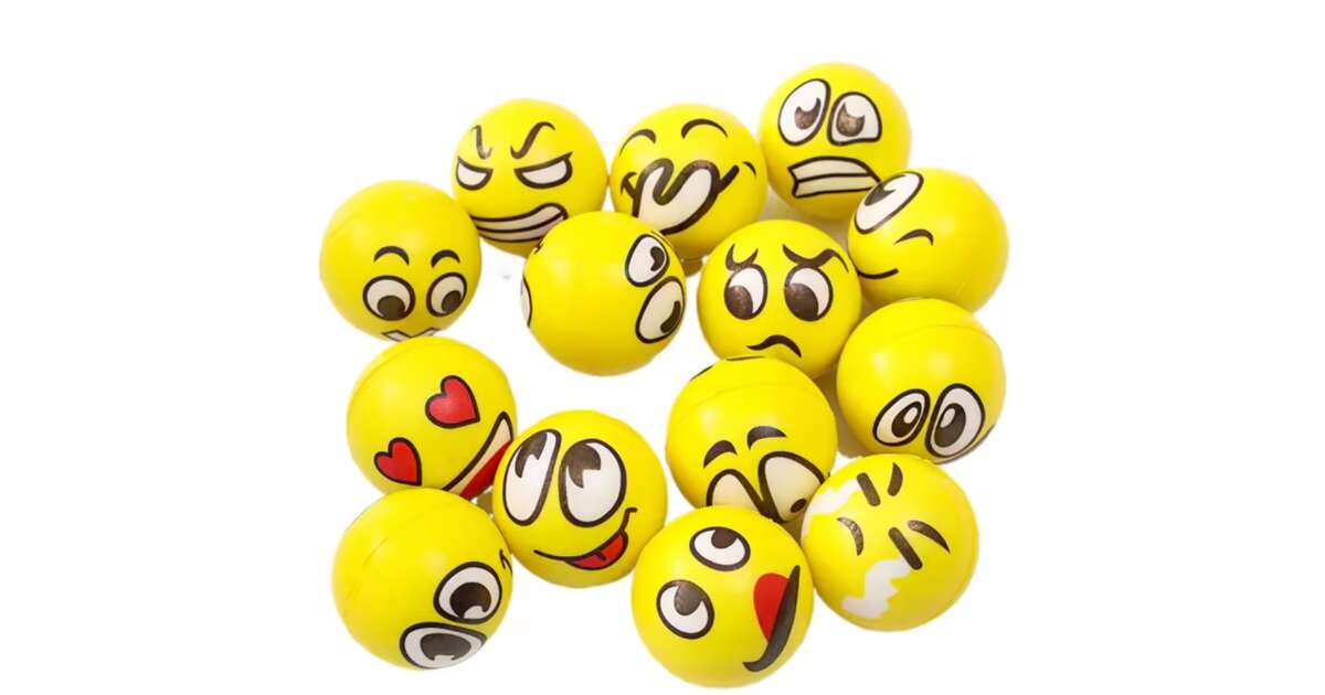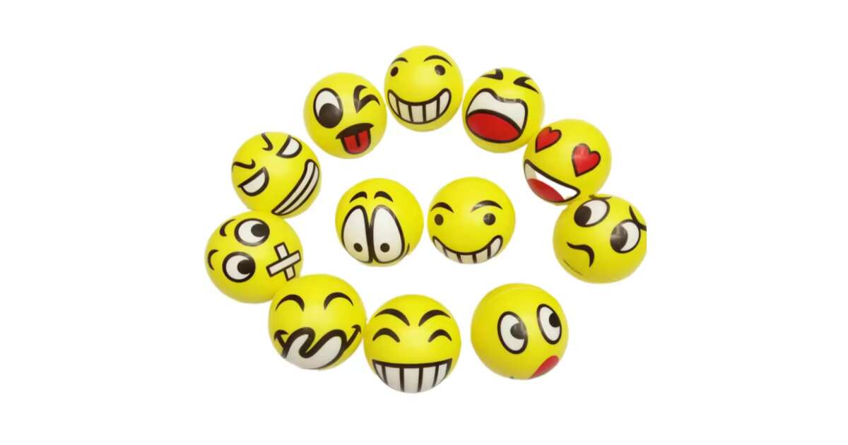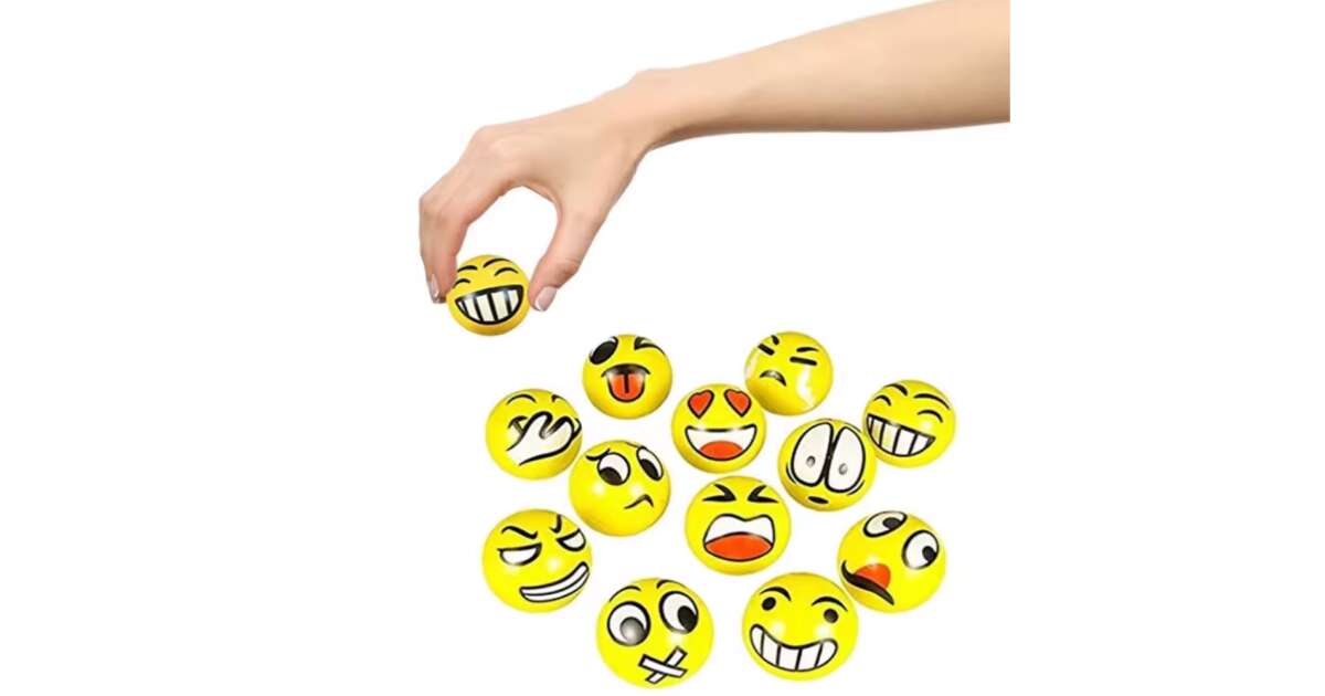 12 darabos szaggatott játékból álló készlet, hangulatjelekkel ellátott stresszoldó labdák, hatékonyan csökkenti a szorongást, sárga, PROMERCO®