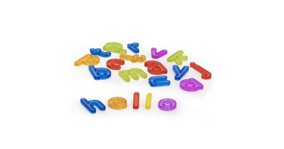 Ez a vidám, áttetsző kisbetűkből álló készlet nagyszerű módja a betűk és az ábécé elsajátításának. A különböző színek és a tapintható betűk segítenek a gyermekeknek a betűk felismerésében és megjegyzésében. A készlet könnyen tisztítható, és alkalmas világos asztalokon való játékra.