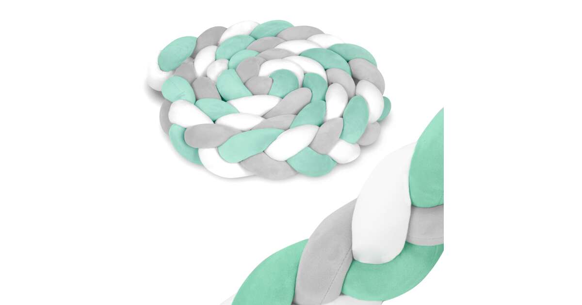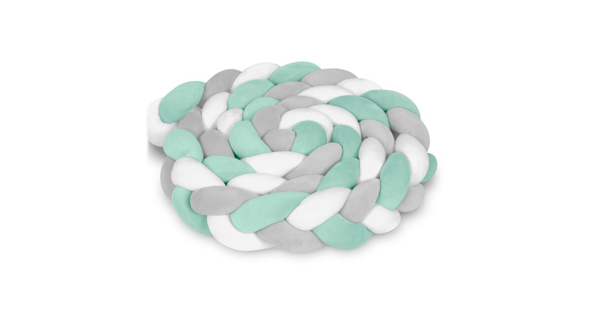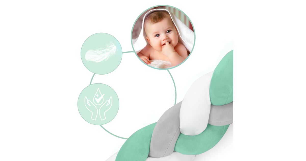 Ez a 3 méteres fonott kiságyrácsvédő tökéletes választás a babád biztonságának és kényelmének növelésére. Puha, kellemes tapintású, antiallergén anyagból készült, így a legkisebbek bőrére is kíméletes. A menta és szürke színkombináció pedig gyönyörűen feldobja a gyerekszobát. ✨