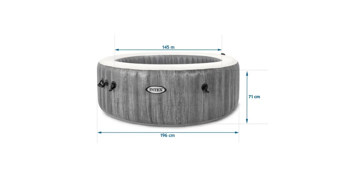Élvezze a kényeztetést és a kikapcsolódást ezzel a 4 személyes, felfújható jakuzzival! A stílusos, sötétszürke famintás dizájn tökéletesen illeszkedik bármely kertbe vagy teraszra. A 140 légfúvóka és a 2200 W-os fűtés garantálja a kellemes, meleg fürdőzést. A levehető vezérlőegység egyszerűvé teszi a használatot, a beépített vízkővédelmi rendszer pedig meghosszabbítja a jakuzzi élettartamát. A vásárlók kiemelik a könnyű felfújást és üzembe helyezést, valamint a kellemes masszírozó hatást.