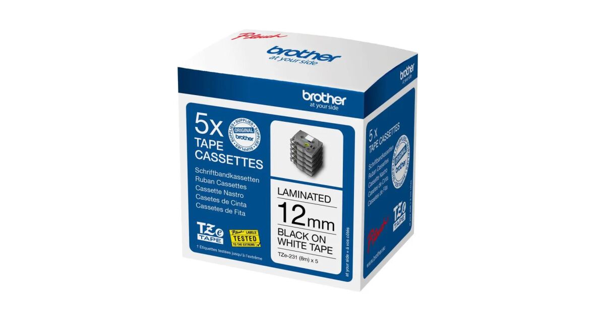 Brother TZe-231 fekete-fehér 12 mm csomagolószalag (5 db) Minden P-touch TZ/TZE modellhez