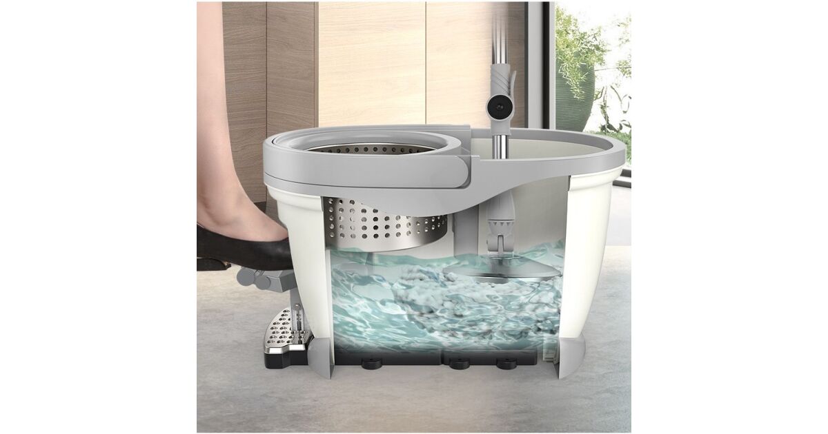 360°-ban forgó pedálos vödör és felmosó készlet, flippy, centrifugális működéssel x4 A felmosó kicsavarásakor kettős nyomás érhető el, az alumíniumötvözet pedál pedig gyors csavarást és hatékonyabb szárítást biztosít. A nedves és száraz tisztításhoz használt felmosó újítása egy 4 tisztítóegységgel és egy forgó felmosóval, valamint egy centrifugálisan működtetett csillapító rendszerrel van felszerelve, amelyet mind a kézi, mind a pedálon lévő lábnyomás aktivál. A felmosó kicsavarásakor kettős nyomás érhető el, az alumíniumötvözet pedál pedig gyors csavarást és hatékonyabb szárítást biztosít. Ennek a felmosónak a kezelése rendkívül egyszerűvé válik, csak egy ujjra van szükség a szorításhoz. Az ergonómikus kialakítás könnyű csavarást tesz lehetővé, a felmosó pedig stabil és megbízható marad használat közben. A kar elve az erőátviteli eszközzel és a tisztítókonzollal együtt a felmosó rúd teleszkópos mozgását a tisztítófej forgó mozgásává alakítja, így munkaerőt takarít meg és biztosítja a hatékony szárítást. Maga a felmosó finom pamutszálakból készült, könnyű centrifugálást és erős vízfelvételt biztosít, anélkül, hogy megszáradna. A 180 fokban forgatható rúddal és a 360 fokban forgatható felmosóval különböző szögeket és nehezen elérhető helyeket érhet el, mindössze 5 cm-re van szükség ahhoz, hogy a különböző bútorelemek alá csússzon. A csúszásgátló fogantyú több szögből is használható, a kiváló minőségű, nemesacél teleszkópos rúd mérete pedig 100 és 130 cm között állítható. A robusztus felépítés egy 25 mm vastag ütés- és korrózióálló csövet tartalmaz, valamint egy rúdreteszelő rendszert a nagyobb stabilitás érdekében. A szárítókosár rozsdamentes acélból készült, és beépített turbinával rendelkezik a stabil és hatékony forgás érdekében. A szennyvíz kettős tárolása és a szennyeződések visszatartására szolgáló integrált gát további funkciók, amelyek hozzájárulnak a termék hatékonyságához. A rejtett és ergonomikus fogantyúnak köszönhetően ez a felmosórongy könnyen hordozható, és a szennyeződés eltávolítása a vödör alján lévő lyukon keresztül könnyedén elvégezhető. A hagyományos műanyagnál 5-ször erősebb PP anyag tartósságot és ellenállást biztosít a terméknek. Minden típusú felületre alkalmas, beleértve a fát, a cementet, a márványt és a követ, ez a mop innovatív és hatékony megoldás a takarításhoz
