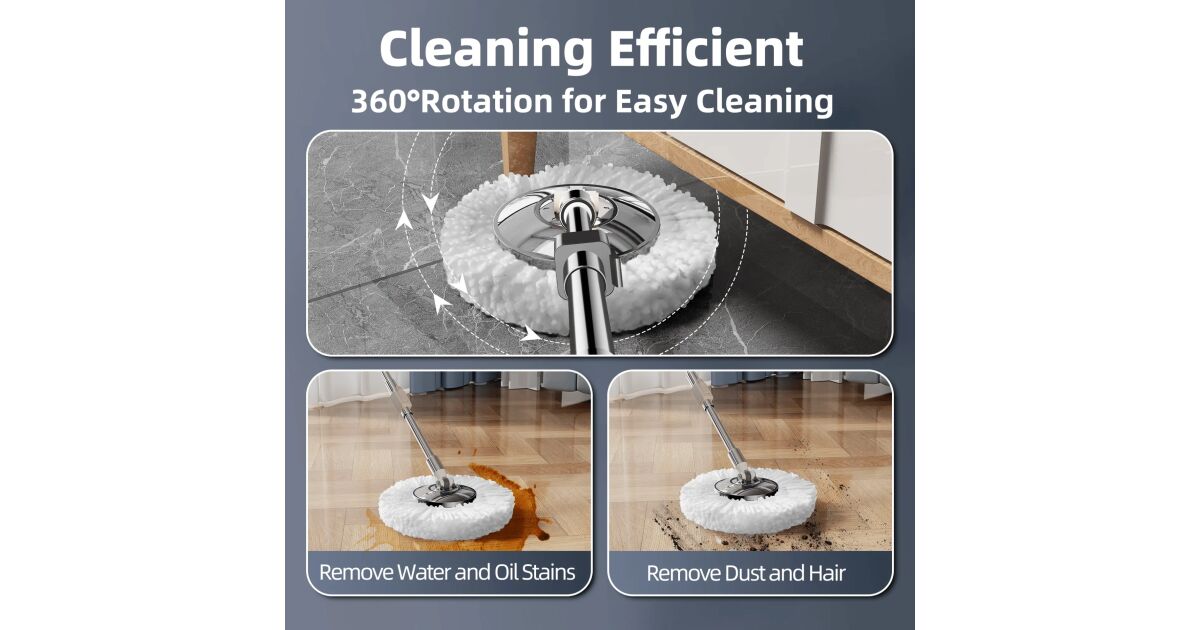 - 💧 Centrifugális rendszer: Gyorsan eltávolítja a felesleges vizet a felmosóból, így a padló hamarabb megszárad.