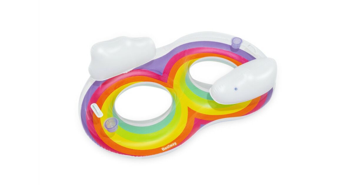 Élvezd a nyári napokat ezzel a Bestway dupla úszógyűrűvel! Két személy számára tervezték, így tökéletes választás pároknak vagy barátoknak, akik együtt szeretnének pihenni a vízben. A szivárványos színvilág vidám hangulatot teremt, a kényelmes fejtámlák és a beépített italtartók pedig a tökéletes kényelmet biztosítják.