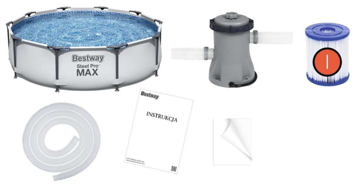 - Tartozékok: Medence, javítótapasz, szűrőszivattyú, szűrőbetét
