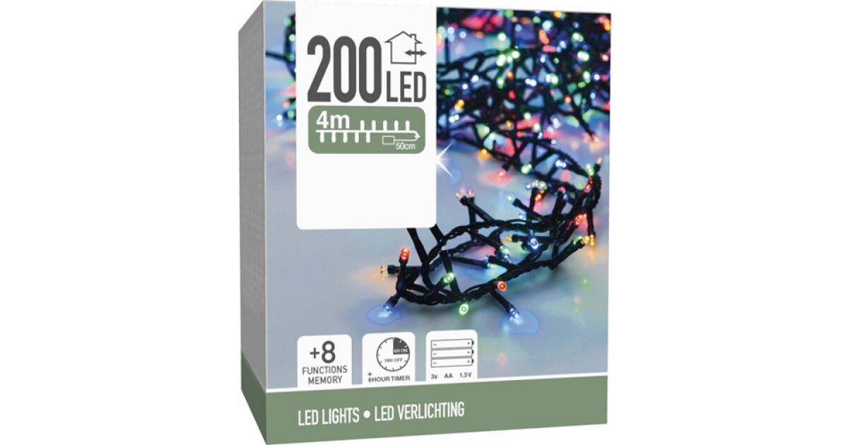 200 LED-es kültéri-beltéri BOA fényfüzér, elemes, színes RGB, 8 világítási móddal, időzíthető, 4 m, IP44