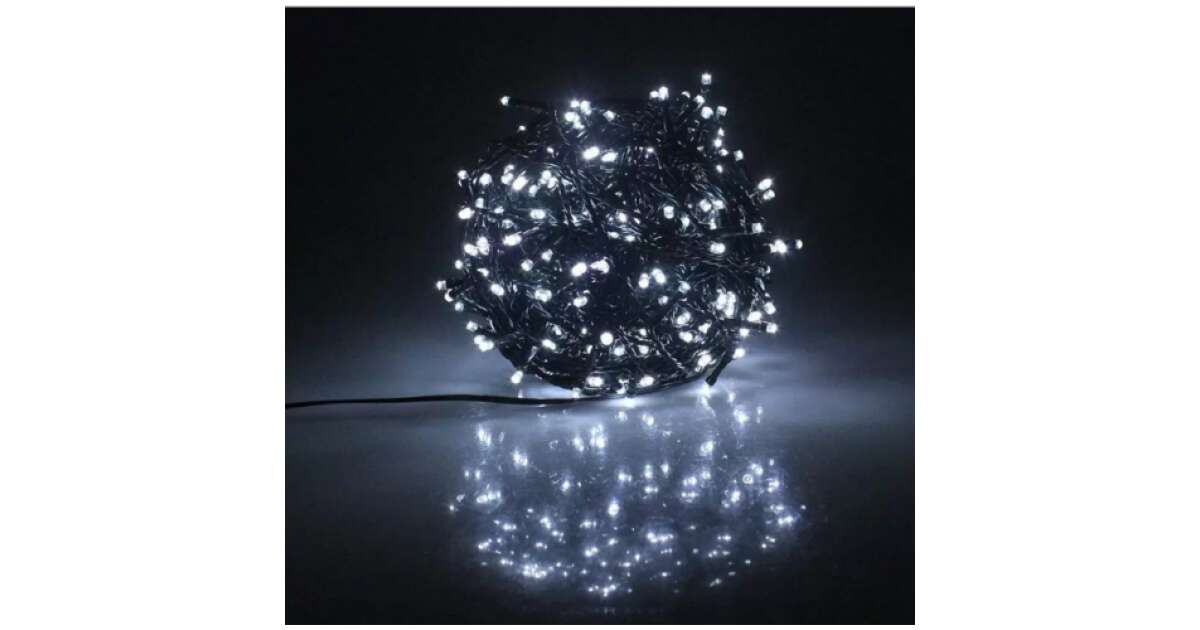 500 LED-es karácsonyi izzó, fényfüzér, 8 világítási móddal, hideg fehér, 32 m