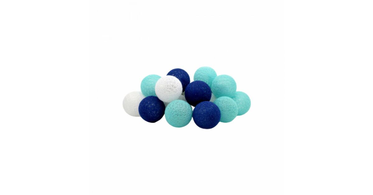 BShop LED-es Pamut Gömb Lámpafüzér - 20 db, 3m - Kék, Türkiz, Fehér