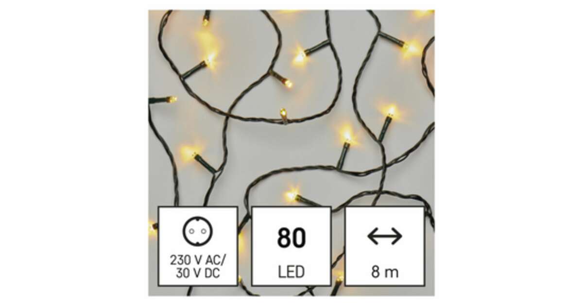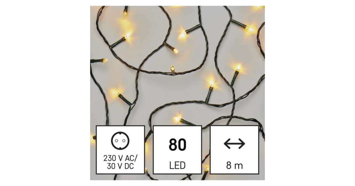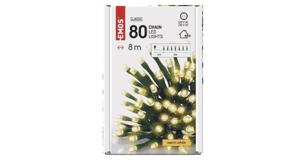 EMOS Karácsonyi LED Fényfüzér - 80 LED, 8 méter, Meleg Fehér
