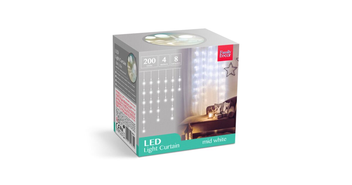 Varázsoljon otthonába ünnepi hangulatot ezzel a 200 LED-es fényfüggyönnyel! A 4,2 méteres hosszúságú, középfehér fényekkel díszíthet karácsonyfákat, ablakokat, falakat, vagy akár kültéri teraszokat is. 8 féle világítási programmal könnyedén megteremtheti a kívánt hangulatot.
