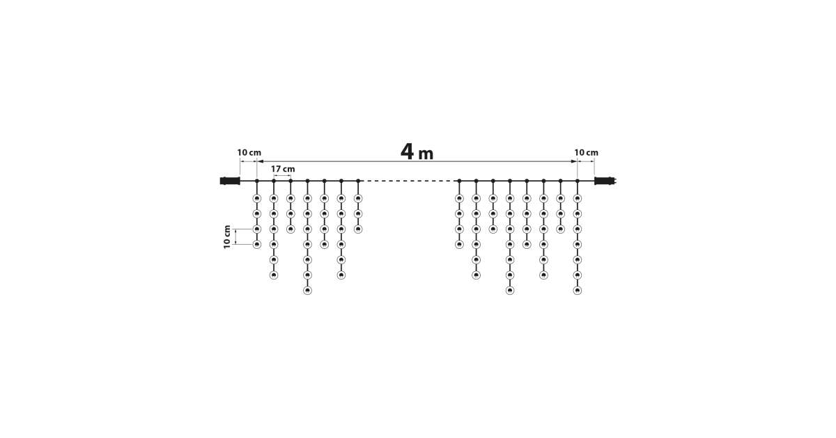 - 4 méter hosszú fényfüzér (plusz 20 cm kábel a konnektorig)