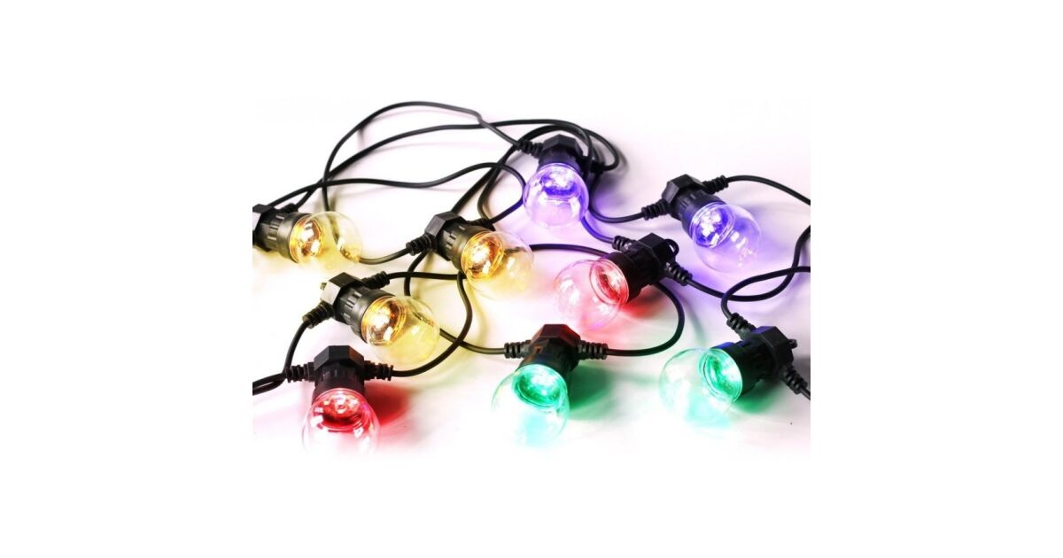 - 10 db átlátszó izzó, mindegyikben 5 db többszínű LED (összesen 50 LED) ✨