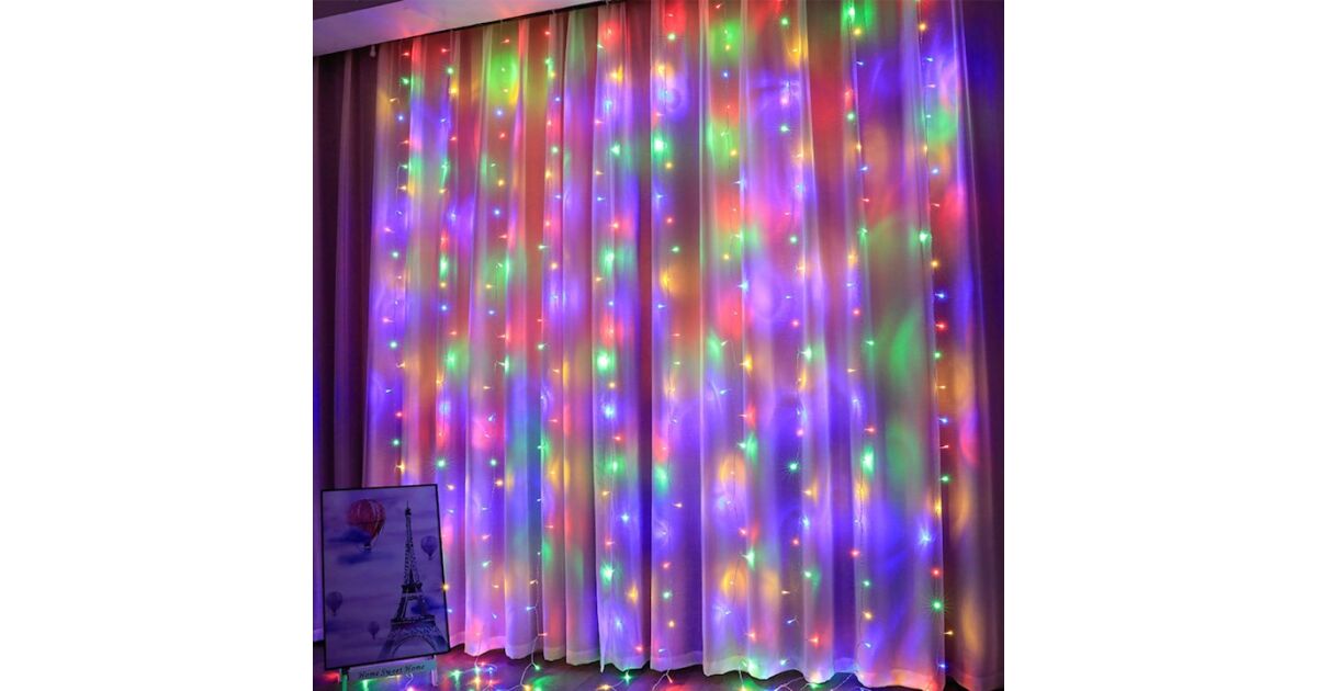 Ezt a terméket így is ismerheted: Függöny típusú karácsonyi Fényfüzér, S DEPOT®, 200 LED-del, 8 lámpával, átlátszó menettel, beltéri és kültéri használatra, többszínű