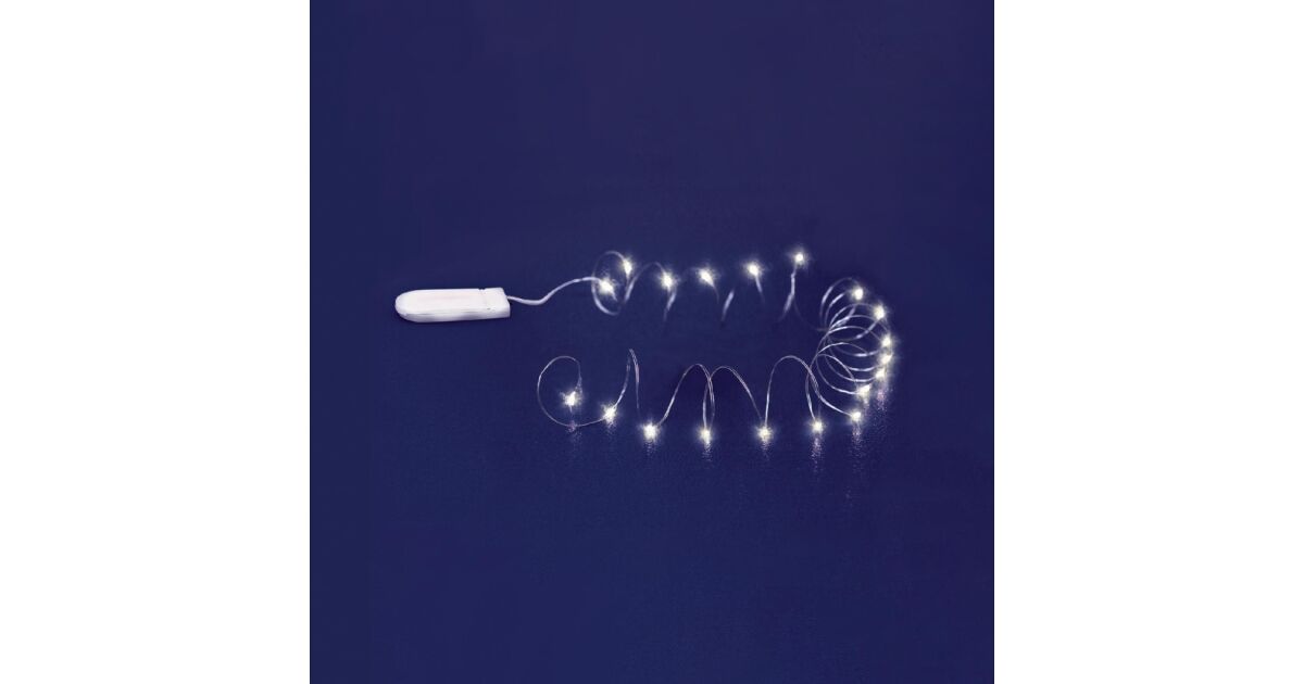 Home MLF 26/WH micro LED-es fényfüzér, 2 m/20 db hidegfehér micro LED, állófényű, átlátszó vezeték, időzíthető, gombelemes, beltéri