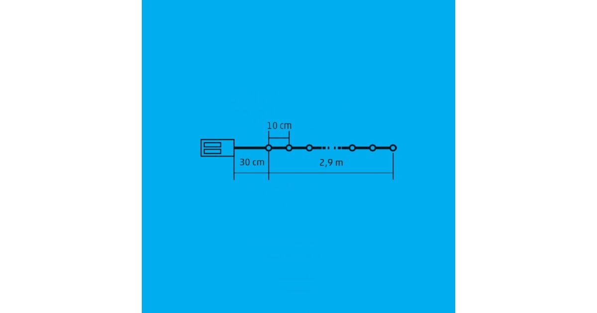 Home ML 30/M micro LED fényfüzér, 2,9 m / 30 db színes micro LED, állófényű, kapcsolható és időzíthető, átlátszó vezeték, elemes, beltéri kivitel leírása