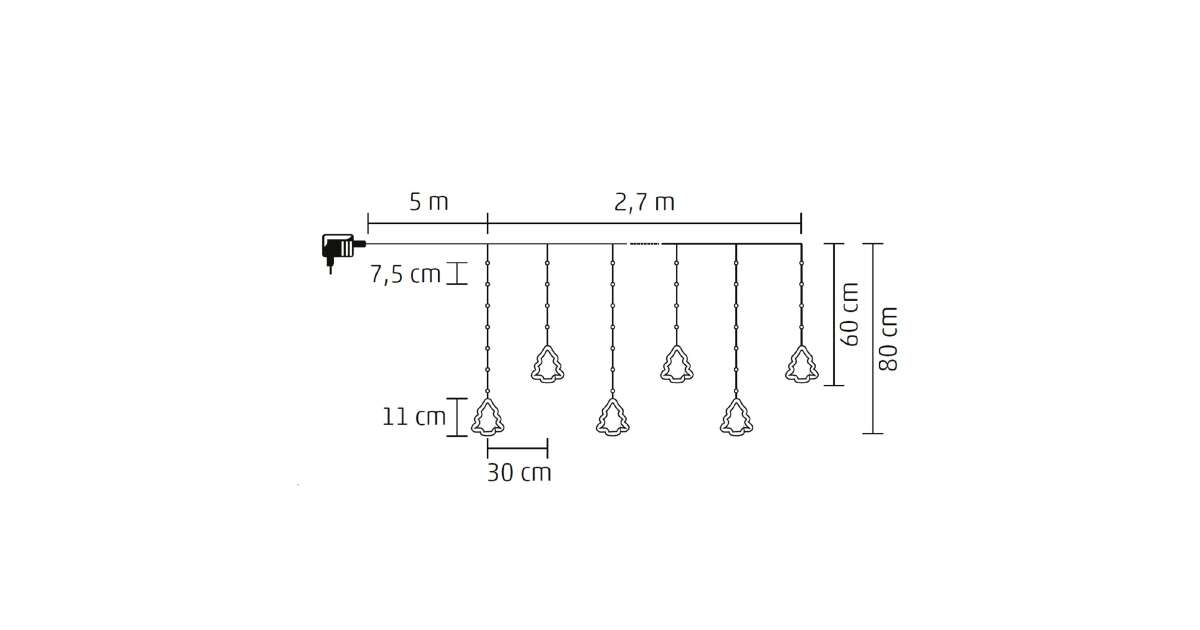 - 2,7 méter hosszú füzérek: 5 méteres tápkábellel.
