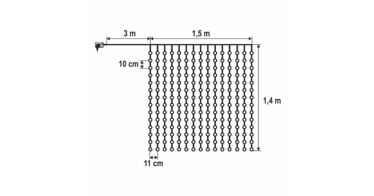 Ezt a terméket így is ismerheted: HOME KIN210DWH DOT LED-es fényfüggöny, 210db hidegfehér DOT LED, 1,5m hosszú, állófényű, adapteres tápellátás, beltéri kivitel