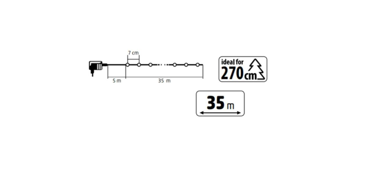 - 📏 35 méter hosszú füzér + 5 méter tápkábel: Könnyű elhelyezés és telepítés.