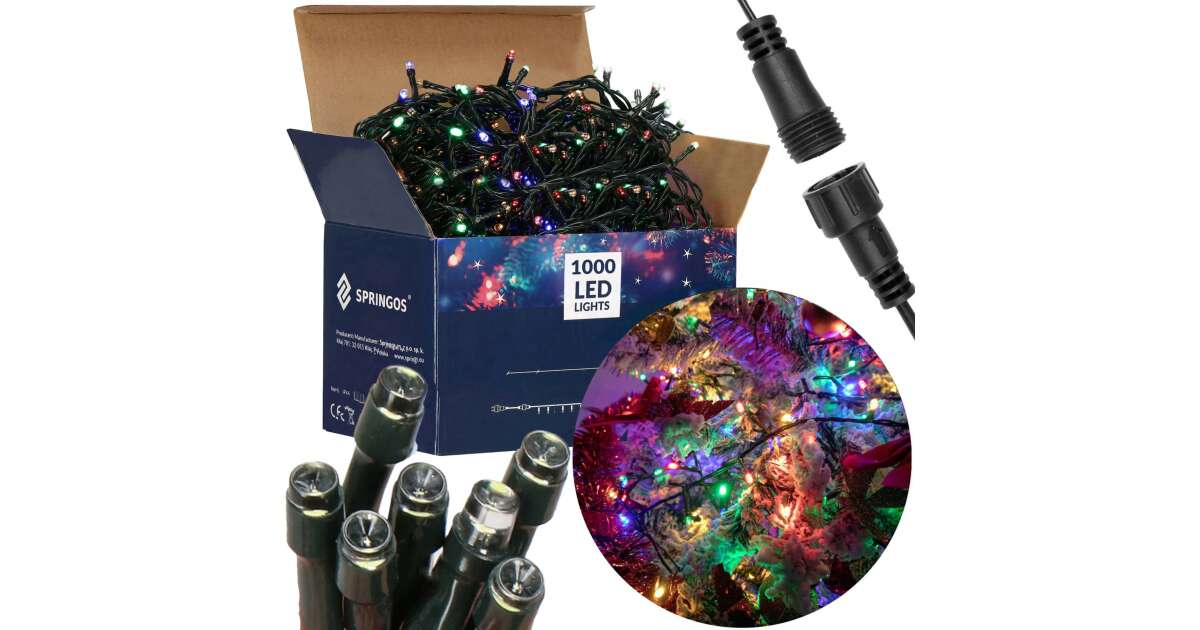 Ragyogó hangulatot szeretnél teremteni otthonodban vagy a kertben? A Springos 1000 LED-es RGB fényfüzérrel garantált a sikered! 60 méter hosszú, 1000 színes LED-izzóval varázsolhatod el a környezeted. Ideális karácsonyfára, kerti partikra, esküvőkre vagy bármilyen ünnepi alkalomra.