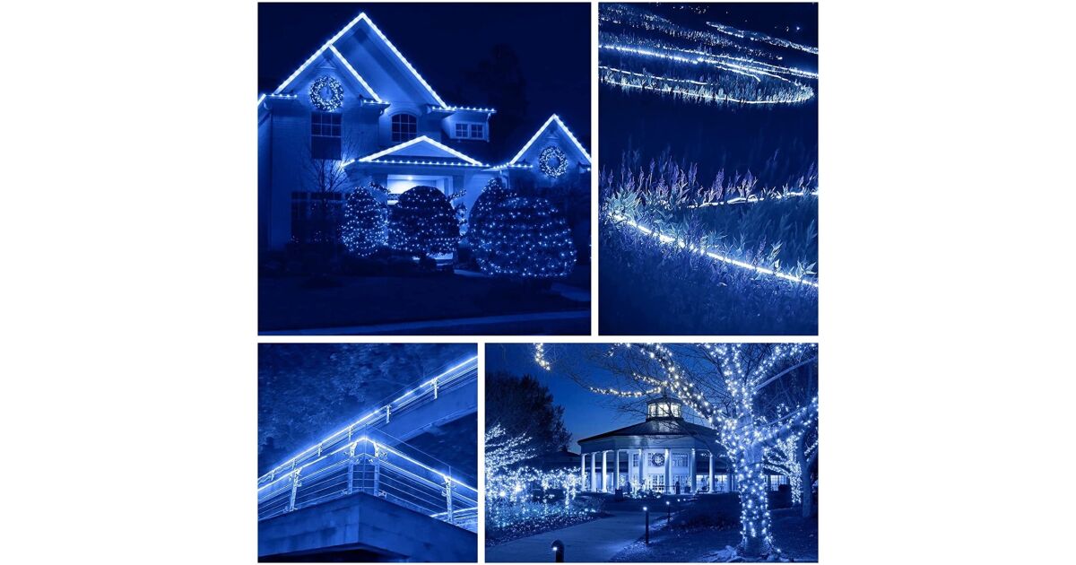 100 méteres karácsonyi fényfüzér - Hideg fehér/kék LED-ekkel ✨