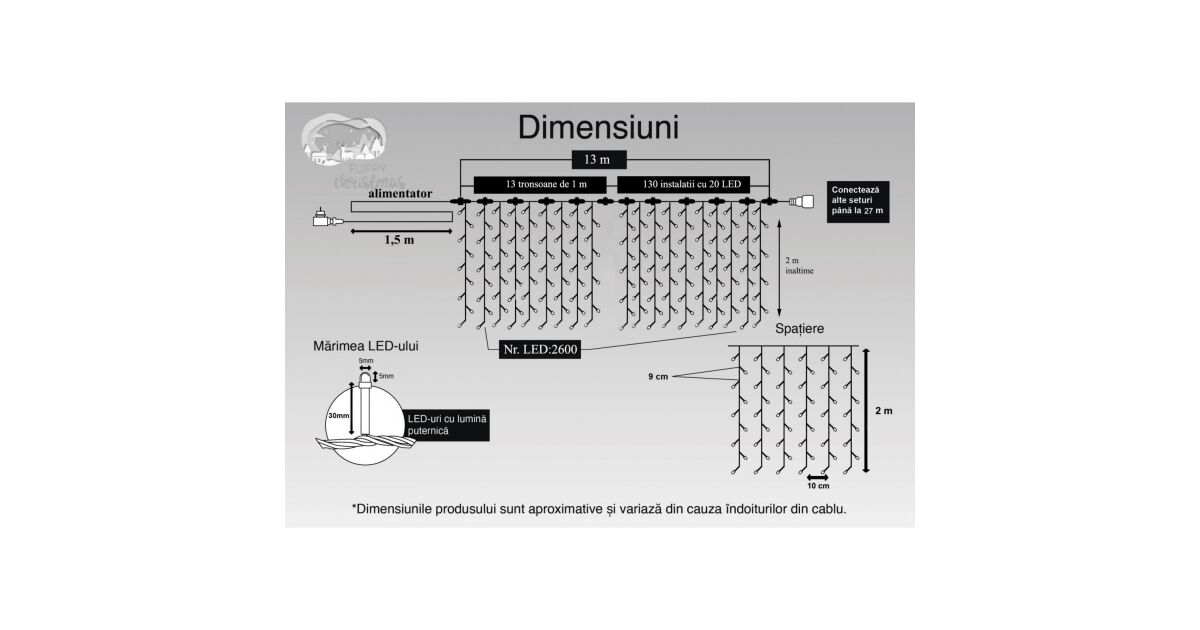 - Látványos hatás: A 2600 LED-es fényfüggöny lenyűgöző látványt nyújt.