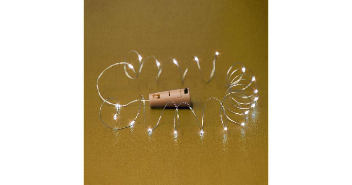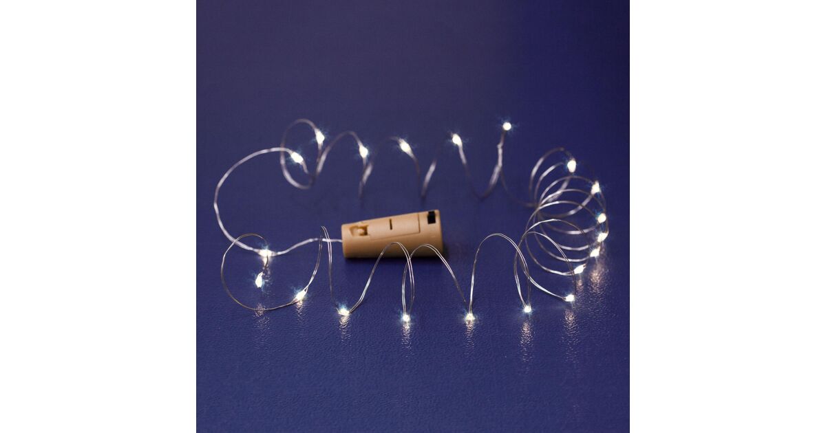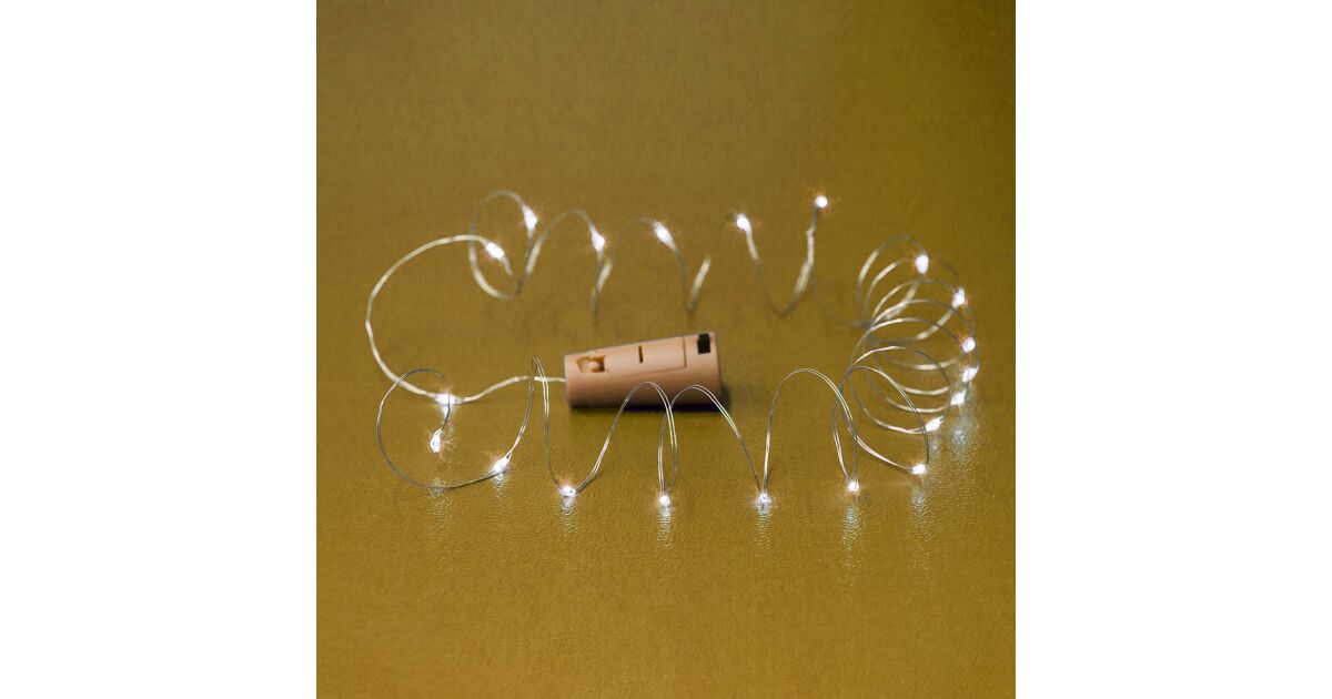 A fényfüzért egyszerűen csak be kell kapcsolni, és már élvezheti is a kellemes, melegfehér fényt. Az elemtartó praktikus dugó formájú, így könnyen elrejthető, például egy üvegben vagy vázában. A cserélhető elemeknek köszönhetően hosszú ideig használható. 🔋