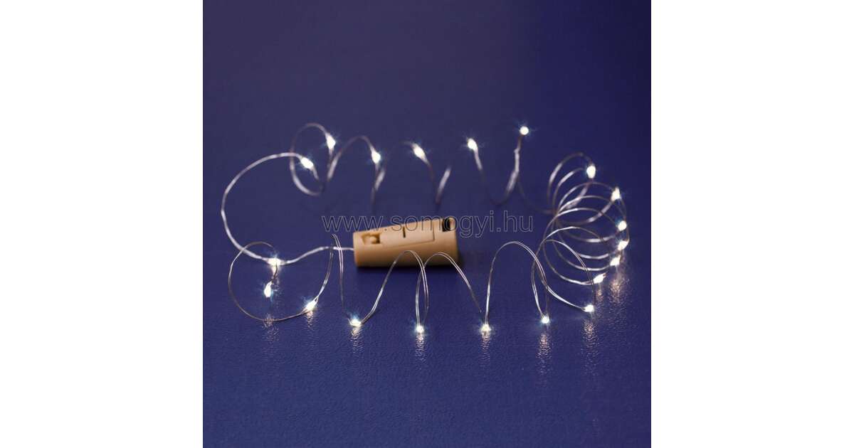 Home MLD 20/WW micro LED-es fényfüzér, 2 m/20 db melegfehér micro LED, állófényű, átlátszó vezeték, gombelemes, dugó alakú elemtartó, beltéri vásárlás: